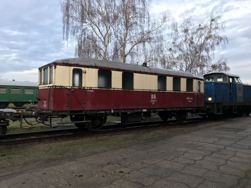 Das Museum Historischer Lokschuppen Wittenberge ist um eine Attraktion reicher. In der Nacht zum 17.12.2019 erreichte der Beiwagen 190 851-6 seinen neuen Standort in Wittenberge. Er blickt auf eine bewegte Geschichte zurück: Das Fahrzeug wurde 1927 bei der Firma Wegmann als 2-achsiger Dieseltriebwagen „VT 804“ gebaut. Die damalige Deutsche Reichsbahn Gesellschaft hatte insgesamt vier Stück dieses Typs erworben, um damit einen wirtschaftlicheren Betrieb auf Nebenbahnen zu testen. Zwei Stück davon verblieben nach dem Krieg in der sowjetischen Besatzungszone. 1951 wurde der Motor unseres Fahrzeugs entfernt und die Deutsche Reichsbahn der DDR setzte ihn fortan als Beiwagen unter der Nummer VB 140 602 ein, unter anderem auf der Strecke Rövershagen – Graal-Müritz. 1960 bis 1975 kam er auf der Prignitzer Kreisringbahn zum Einsatz, bis diese stillgelegt wurde. 1977 übernahm die Rbd Berlin den Wagen und diente dort fortan als Personal- und Bauzugwagen. 1988 übergab man ihn an das Deutsche Technikmuseum Berlin, wo er im Depot für Kommunaltechnik an der Monumentenstraße abgestellt wurde. Dort war er ab und zu für die Öffentlichkeit zugänglich, zuletzt im September 2019.