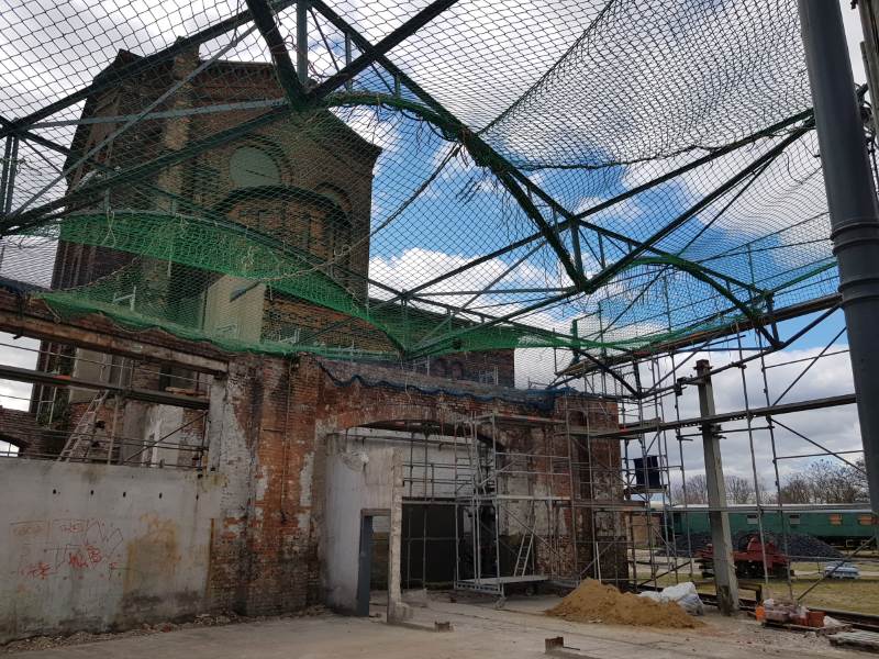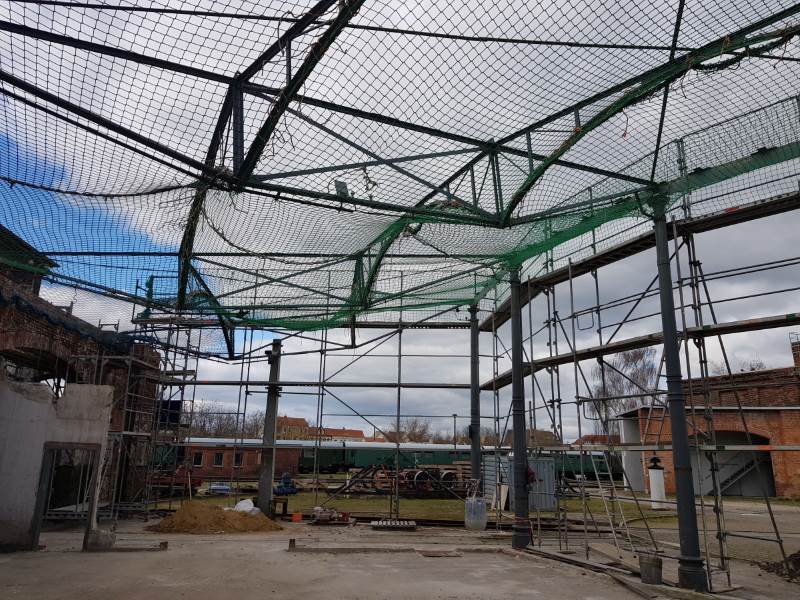 Corona zum Trotz wird im Museum weitergearbeitet, aber natürlich nur so weit, wie es die Umstände zulassen. Denn die Mitglieder möchten ja nicht sich selbst oder andere gefährden. Immerhin ist eine Baustelle in Betrieb. Dabei handelt es sich um die Wiederherstellung von Teilen des Daches des ehemaligen Lokschuppens 1. Hier wurden inzwischen die Mauerkronen durch eine Fachfirma saniert, in dem sie die maroden oberen Schichten abgetragen und mit den vorhandenen alten Ziegeln neu aufgemauert haben. Weiterhin wurde von außen unsichtbar ein Stahlbetonringanker eingebaut, welcher sicher die Lasten der neuen Dacheindeckung aufnehmen kann.