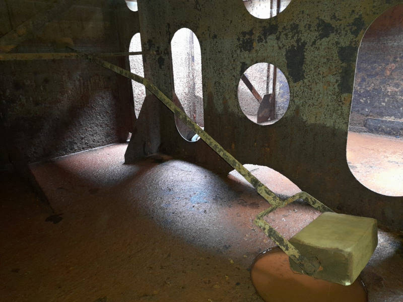 Nicht von außen sichtbar, aber dennoch wichtig für den Betrieb unserer Dampflok 50 3570 ist der Korrosionsschutz im Tender der Lok. Der große Wasserbehälter im Tender verfügt über verschiedene Verstrebungen und Schwallbleche, die alle paar Jahre gereinigt und vom Rost befreit werden müssen. Das gilt auch für den Wasserstandsanzeiger des Tenders (im Vordergrund des folgenden Bildes zu sehen). Dessen viereckiger Schwimmer bewegt einen Zeiger auf der Führerstandsseite des Tenders. Auf einer dort angebrachten Skala können Lokführer und Heizer erkennen, wie viel Wasser sich im Tender befindet und somit kalkulieren, wann sie das nächste Mal Wasser nachfassen müssen.