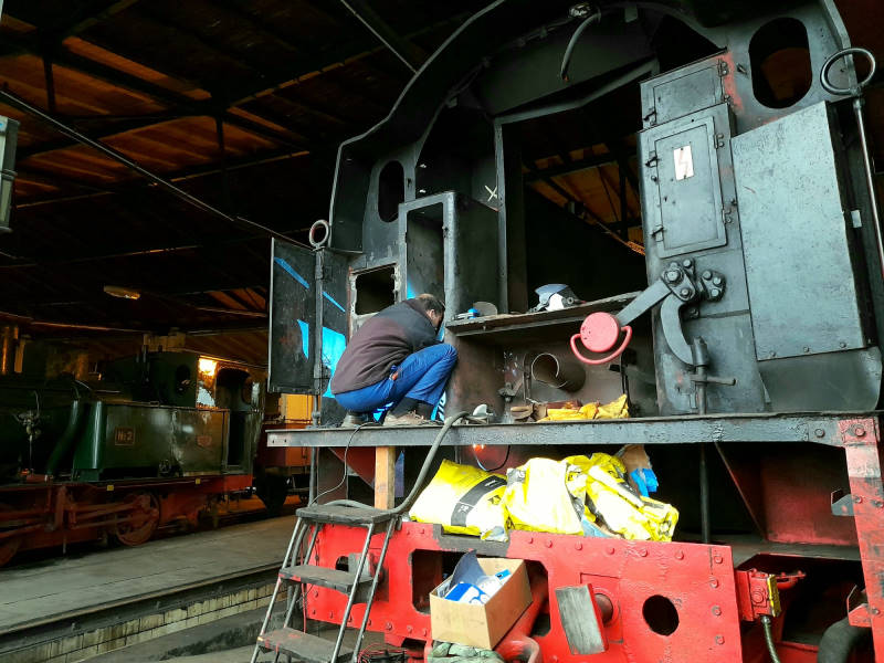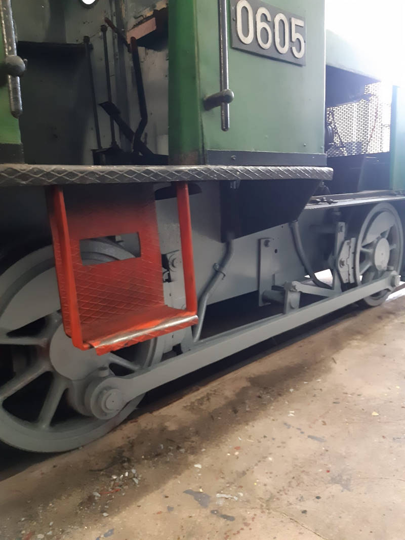 Neuigkeiten gab es auch aus Lackiererei: Hier hat die Diesellok 0605 neue Farbe im Bereich des Fahrwerks erhalten
