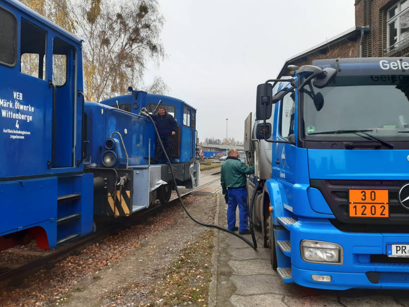 Am Nachmittag kam ein Tankwagen, um unsere Dieselloks mit Kraftstoff zu versorgen. Dazu wurden die Loks auf dem Gleis neben dem Lokschuppen aufgestellt.