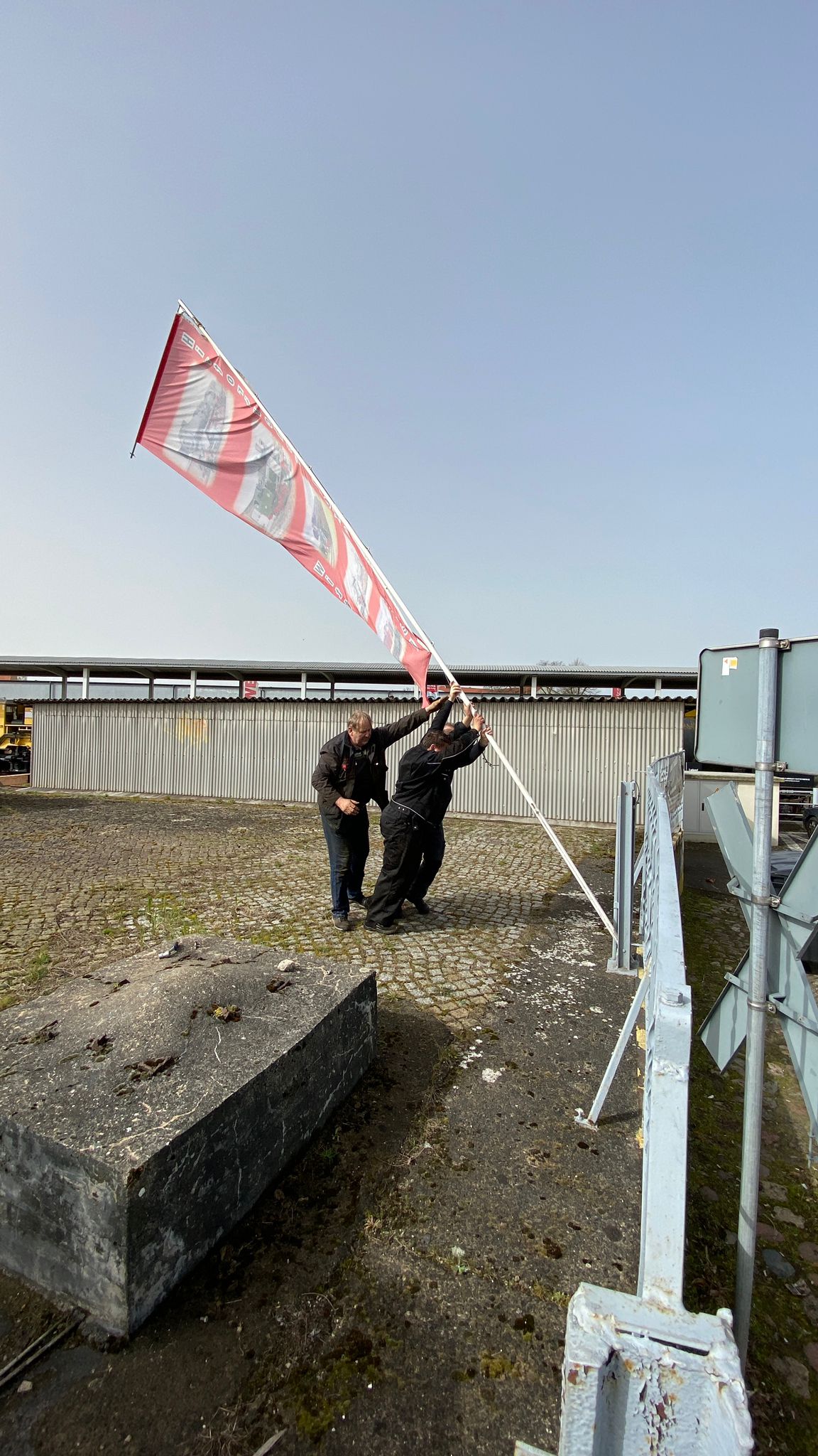 Pünktlich zum Saisonbeginn haben wir auch schon unsere Fahne am Pförtnergebäude gehisst.