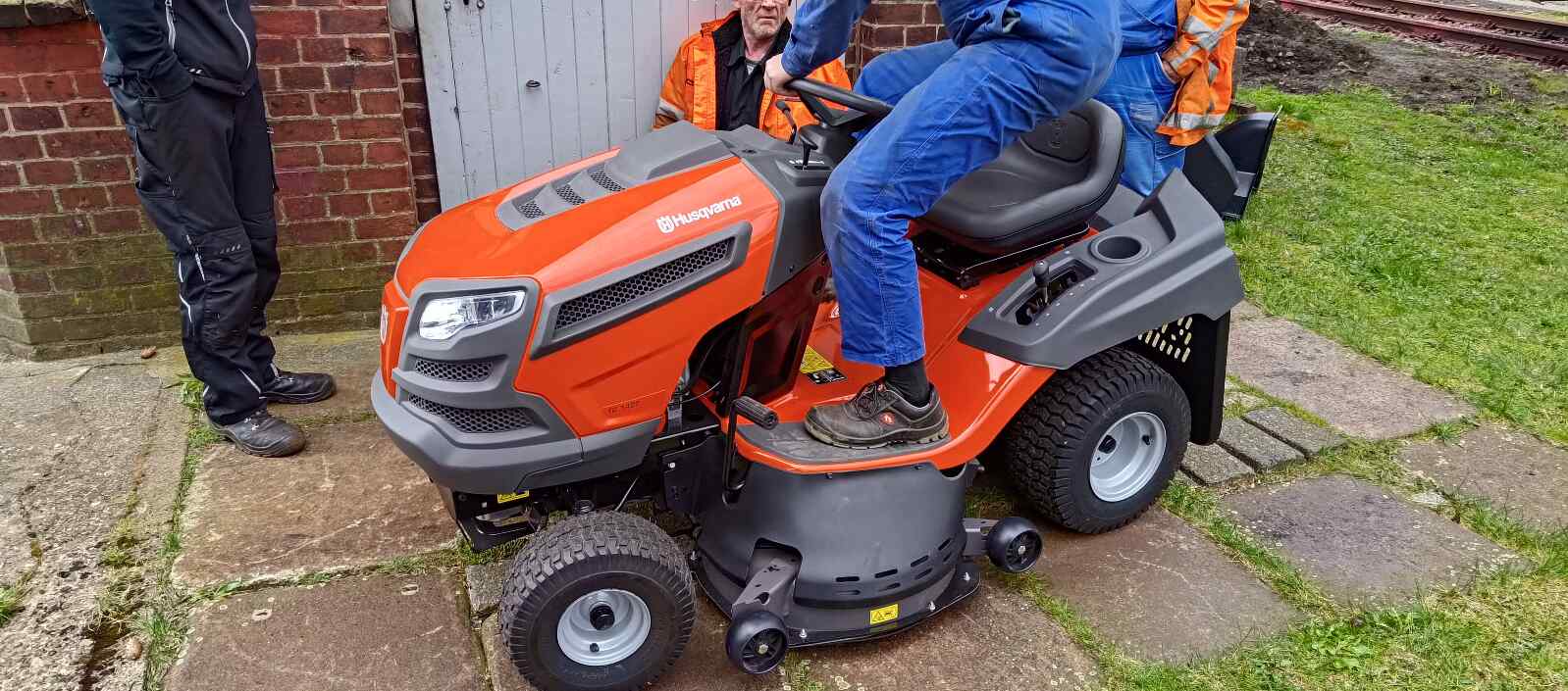 Damit wir vor der Veranstaltung auch noch die Rasenflächen einladend gestalten können, haben wir stolz unseren neuen Rasentraktor in Betrieb genommen.