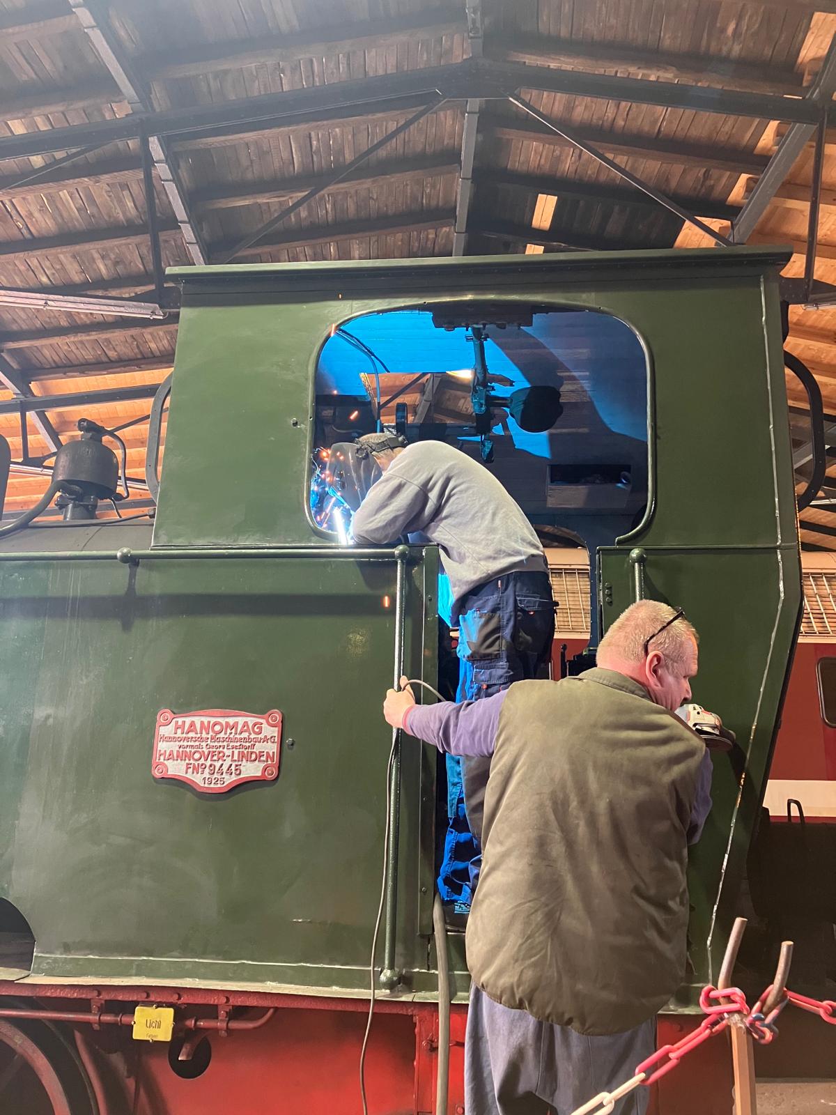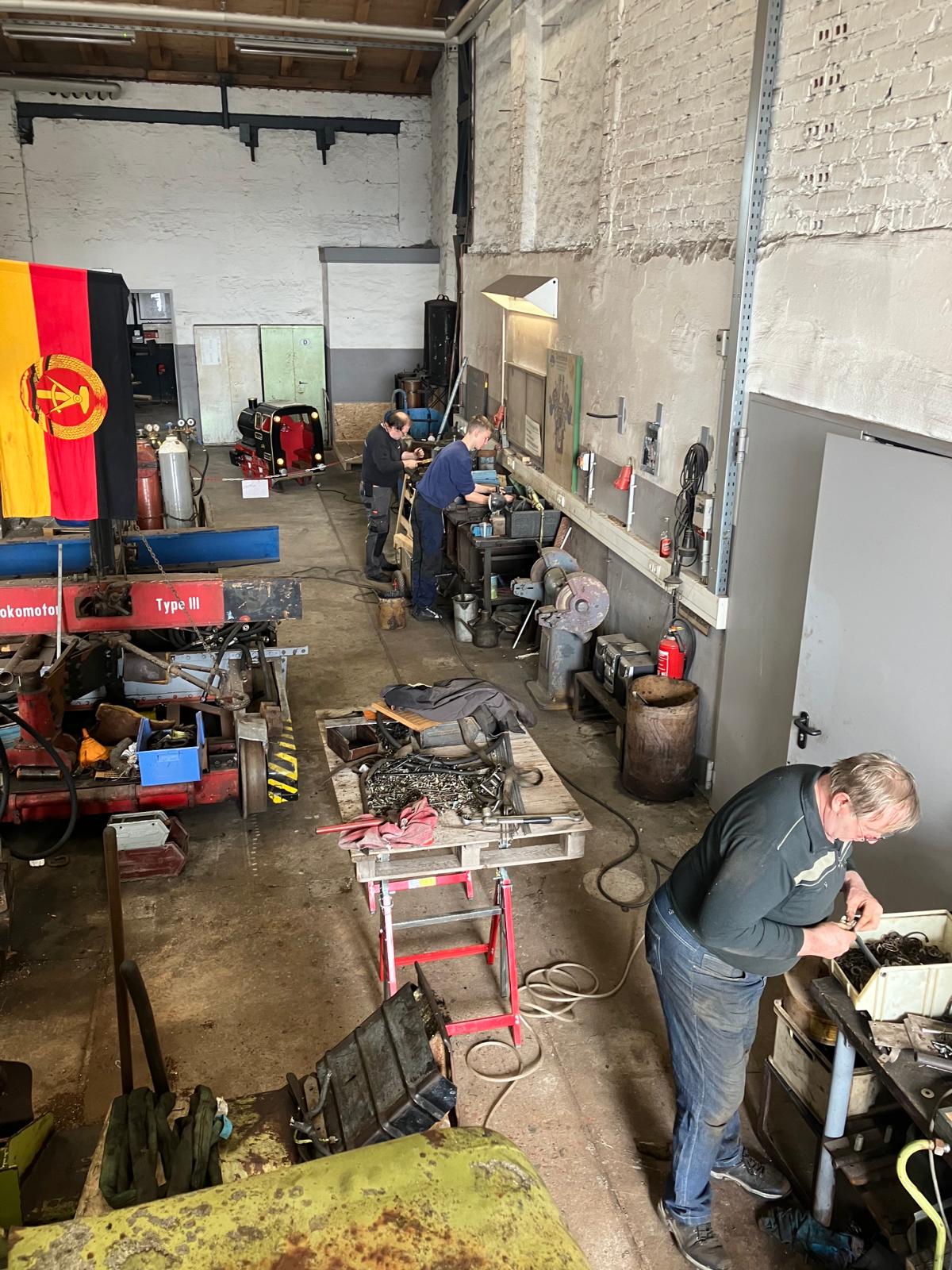 Im Lokschuppen waren die Schweißer und Schlosser fleißig und haben an den Fahrzeugen gearbeitet. In der Werkstatt waren alle Arbeitsplätze belegt.
