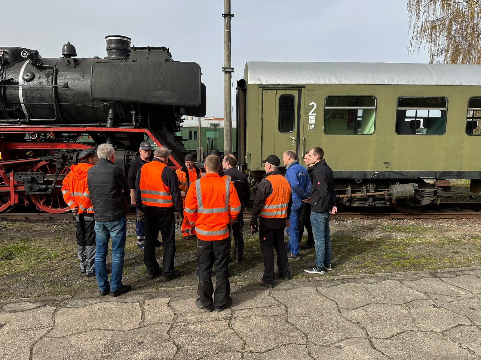 Den Ostersamstag haben wir außerdem für Fortbildung genutzt. Denn immerhin betreiben wir ernsthaften Eisenbahnverkehr mit entsprechenden Risiken. Um sich diesen bewusst zu sein und sie möglichst zu vermeiden, gab es einen Lehrgang zum Thema „Kuppeln, Rangieren und gesichertes Abstellen von Fahrzeugen“.