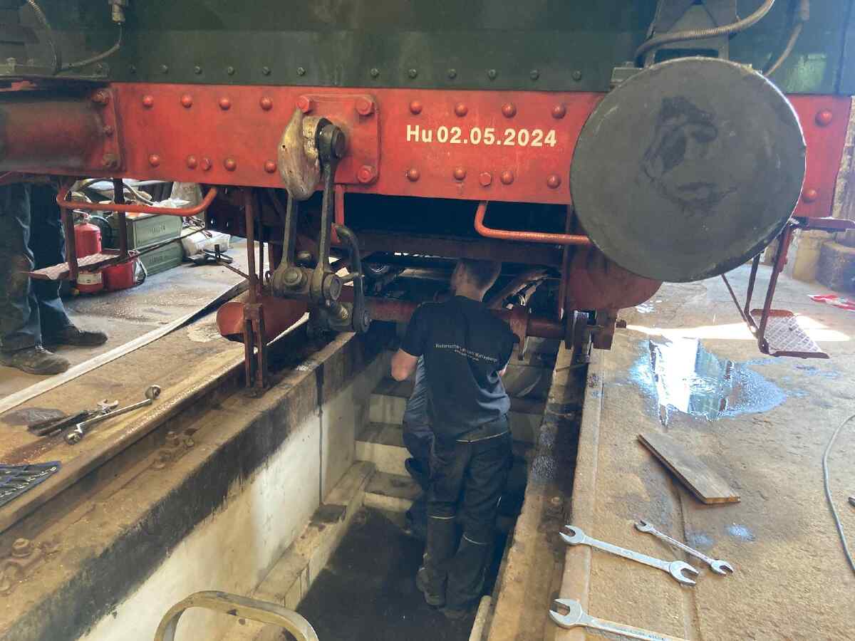 In Luckau angekommen haben wir die Lok wieder komplettiert, nachdem einige überhängende Teile für den Transport abgeschraubt worden waren.