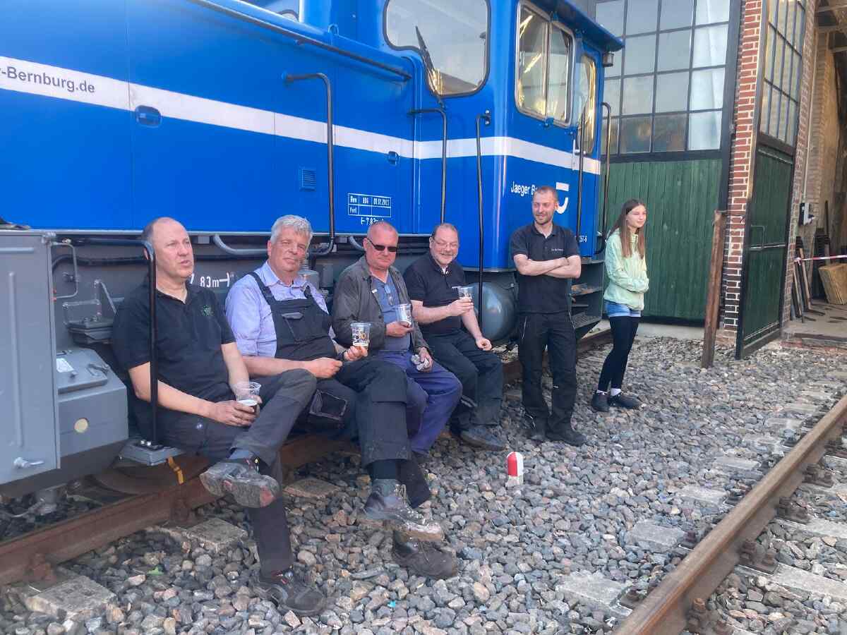 An den Veranstaltungstagen pendelten wir mit unserer Lok zwischen dem Bahnhofsgebäude und dem Bahnübergang an der Berliner Straße auf einer Strecke von rund 600 Metern pro Richtung. Das war Auslauf genug, um unseren mitfahrenden Gästen zu zeigen, was in unserer Lok steckt.