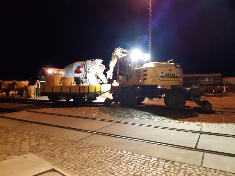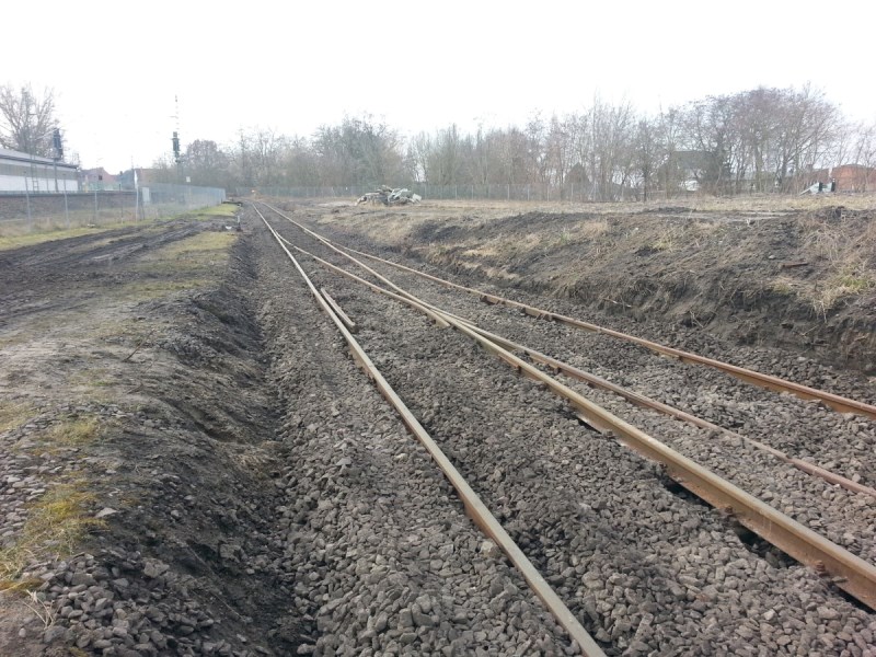Am 7.3.2015 ist der Baufortschritt unseres Gleisbauabschnittes 1 schon deutlich erkennbar. Gleise und Weichen sind verlegt und eingeschottert. In der kommenden Woche werden die Gleise gestopft und teilweise verschweißt.