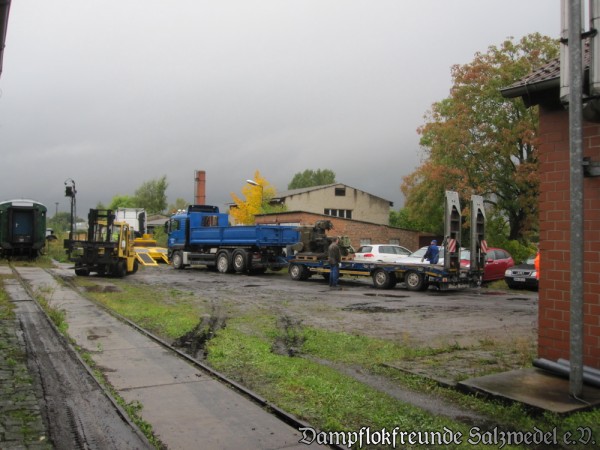 In Kürze werden die restlichen Fahrzeuge überführt. Mehrfach erreichten uns hierzu Anfragen, ob wir die Fahrpläne mitteilen könnten. Wir bitten um Verständnis, dass diese nicht veröffentlicht werden. Wir würden uns aber freuen, alle Interessierten am 27./28.102012 zur Eröffnung des Lokschuppens in Wittenberge begrüßen zu können.