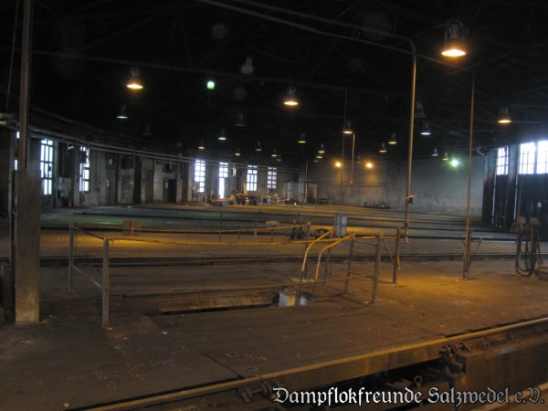 "So leer kann leer sein", dachten die Aktiven des Vereins am vergangenen Wochenende bei einem Blick in den Lokschuppen Salzwedel. Nach fünf Überführungsfahrten auf der Schiene, ungefähr 30 Lkw-Transporten und jeder Menge Arbeit präsentiert sich der Lokschuppen in Salzwedel besenrein, so dass einer Rückgabe an DB Immobilien nichts mehr im Wege steht.