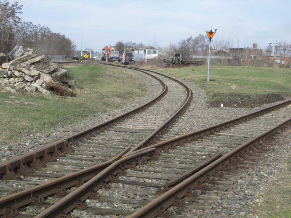 Auf dem Bild erkennt man die Gleisverbindung, die im Jahr 2016 eröffnet wurde, um die Gleisanlagen des Museums am Lokschuppen einerseits und auf der ehemaligen Magdeburger Bahnhofsseite andererseits miteinander zu verbinden. Das Gleis wurde vollständig neu errichtet.