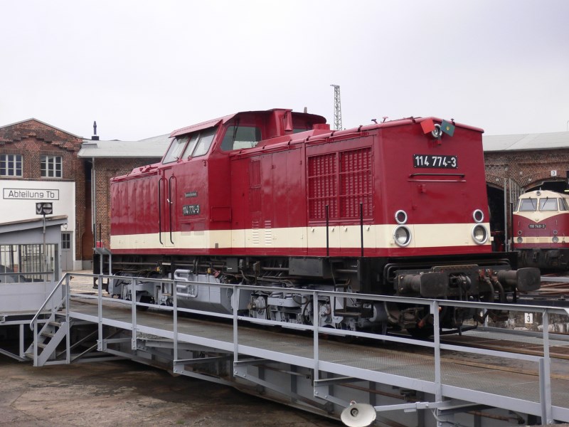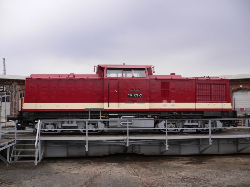 Die Diesellok 204 774-4 repräsentiert die Baureihe V100 der ehemaligen Deutschen Reichsbahn, die in der gesamten ehemaligen DDR auf Neben- und Hauptbahnen zu sehen waren. Sie wurden im Personen- und Güterzugdienst eingesetzt.
