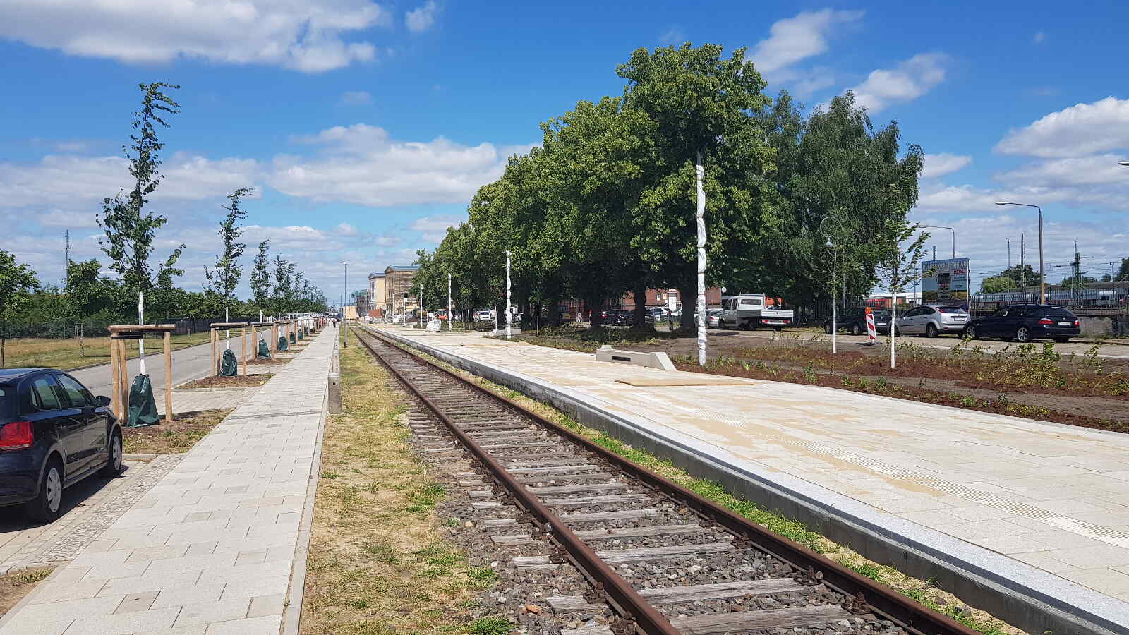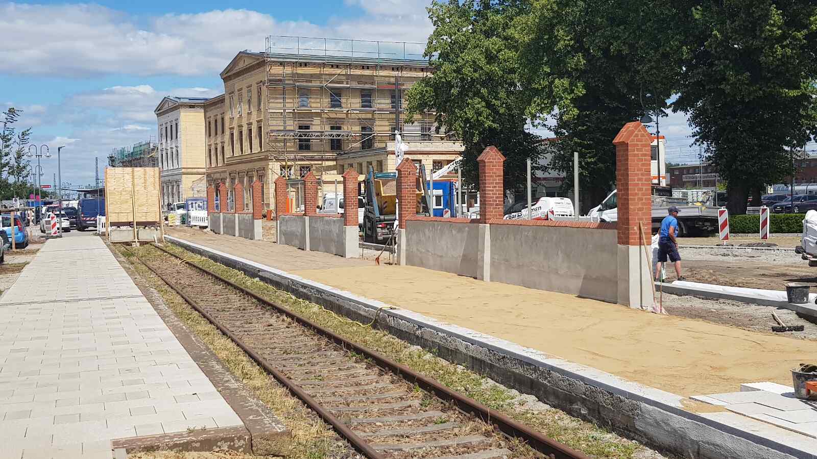 Im Zuge der Neugestaltung der Grünflächen und quasi schon als Vorbereitung auf die Landesgartenschau, die im Sommer 2027 in Wittenberge ausgerichtet wird, wurde der neben dem genannten Gleis gelegene Bahnsteig neu gestaltet. Er wird in Zukunft in die Grünfläche eingebunden, die entlang der Straße "Am Bahnhof" entsteht. Wir freuen uns sehr darüber, denn dadurch wird auch der Weg unserer Gäste vom Bahnhof angenehmer, wenn Sie ab Sommer 2026 mit der Bahn anreisen.
