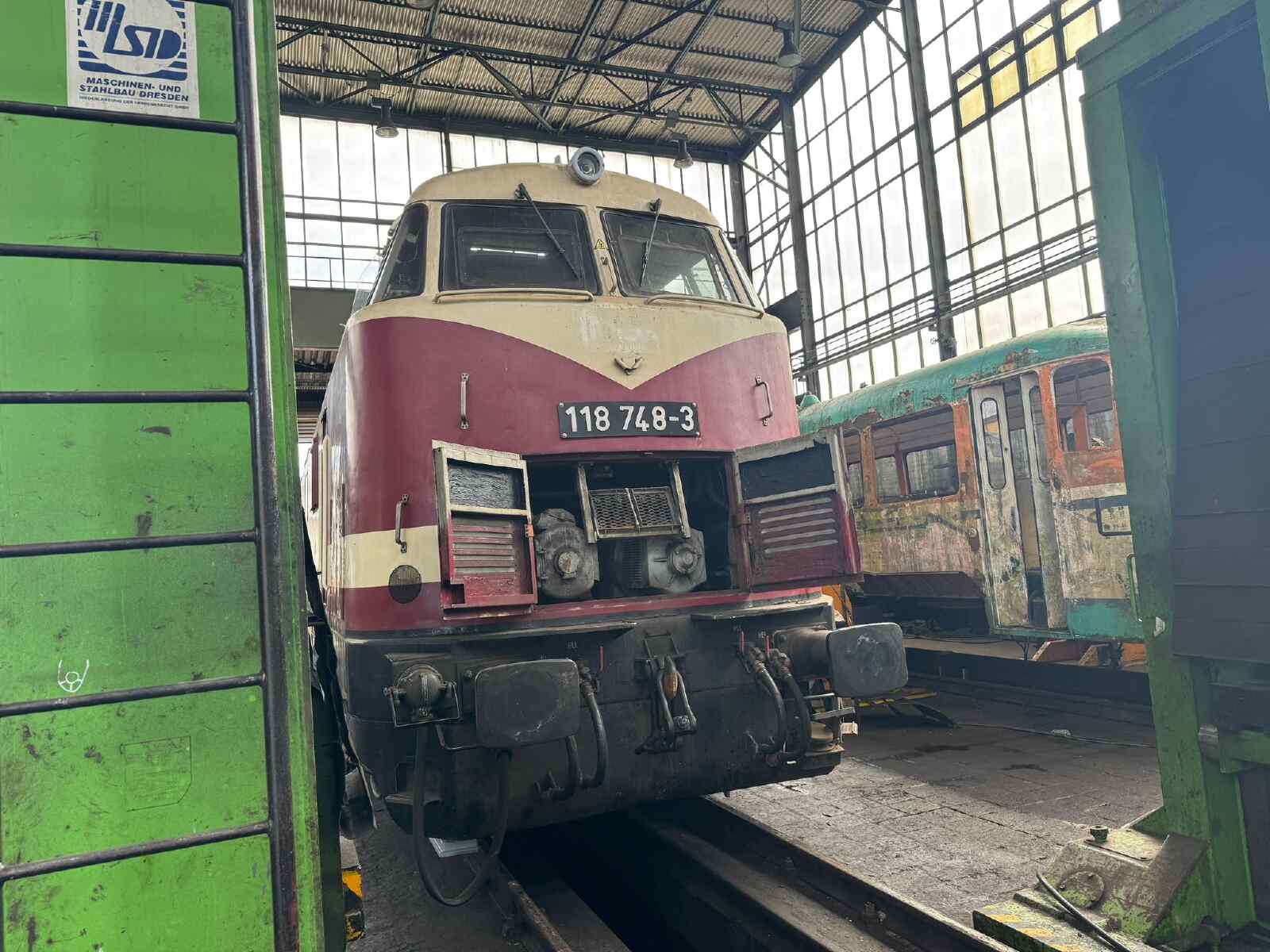 Kommen wir nun zu den Aktivitäten im Museum und seinen Fahrzeugen. Einige Besucher fragten bereits während der letzten Veranstaltung, wo unsere Diesellok 118 748 sei. Die Antwort lautet: Sie befindet sich noch in einer Fachwerkstatt, wo eine Hauptuntersuchung durchgeführt wird. Die entsprechenden Arbeiten sind fast abgeschlossen, die Lok steht wieder auf ihren eigenen Rädern und die Motoren laufen. Zurzeit erfolgen noch Restarbeiten wie der Einbau einer modernen Funkanlage. Sie ist Voraussetzung für den Einsatz der Lok auf öffentlichen Gleisen.