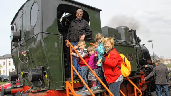 Vereinschef Burkhard Bohn ist Lokführer auf der „Emma“. Hannelore Bresche erfüllt ihren Enkeln mit der Fahrt einen Traum.